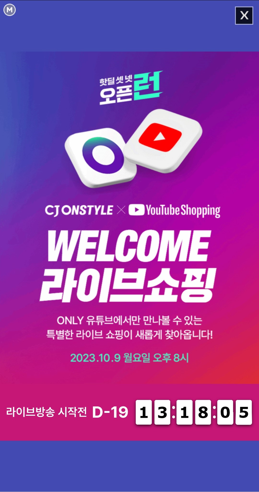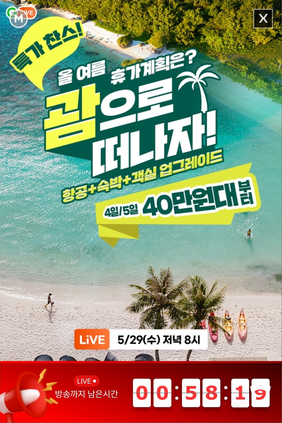 라이브커머스 / 주요 경기 등 카운트다운을 통해 시각적으로 방송 시작을 강조하는 배너입니다. 카운트다운 영역은 퍼블리셔의 조정이 불필요합니다.