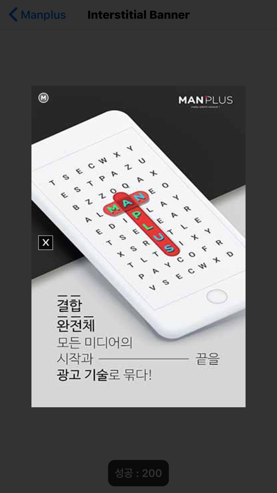 전면에 광고가 게시되며, 배너의 하단에는 동영상광고가 함께 재생됩니다.